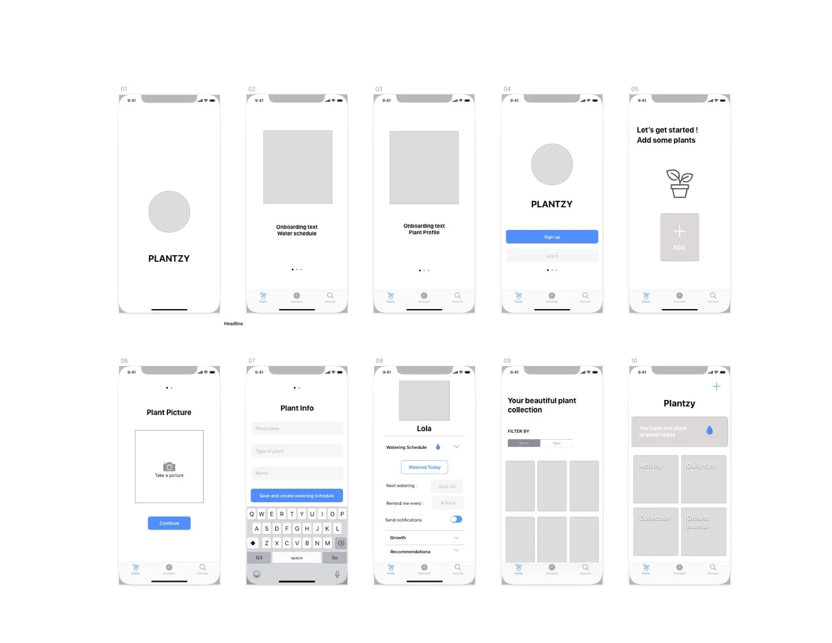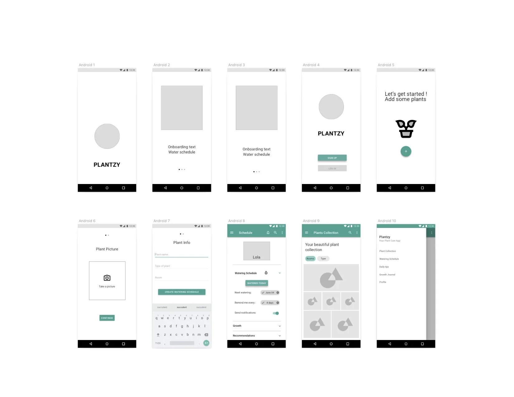 The Mid and Low-fidelity wireframes showcase the basic differences between these 2 app design visions.
